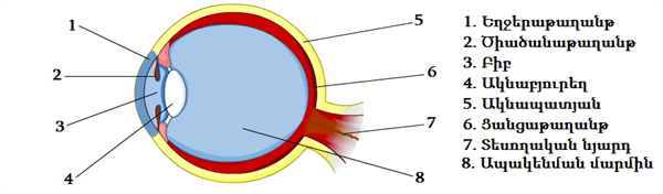 2.Թվարկե՛ք մարդու աչքի մասերը և նշե՛ք դրանց նշանակությունը։