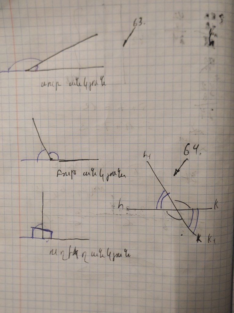 2.Գծեք և անվանեք այն անկյունների զույգերը, որոնք առաջանում են երկու զուգահեռ ուղիղները հատողով հատելիս: