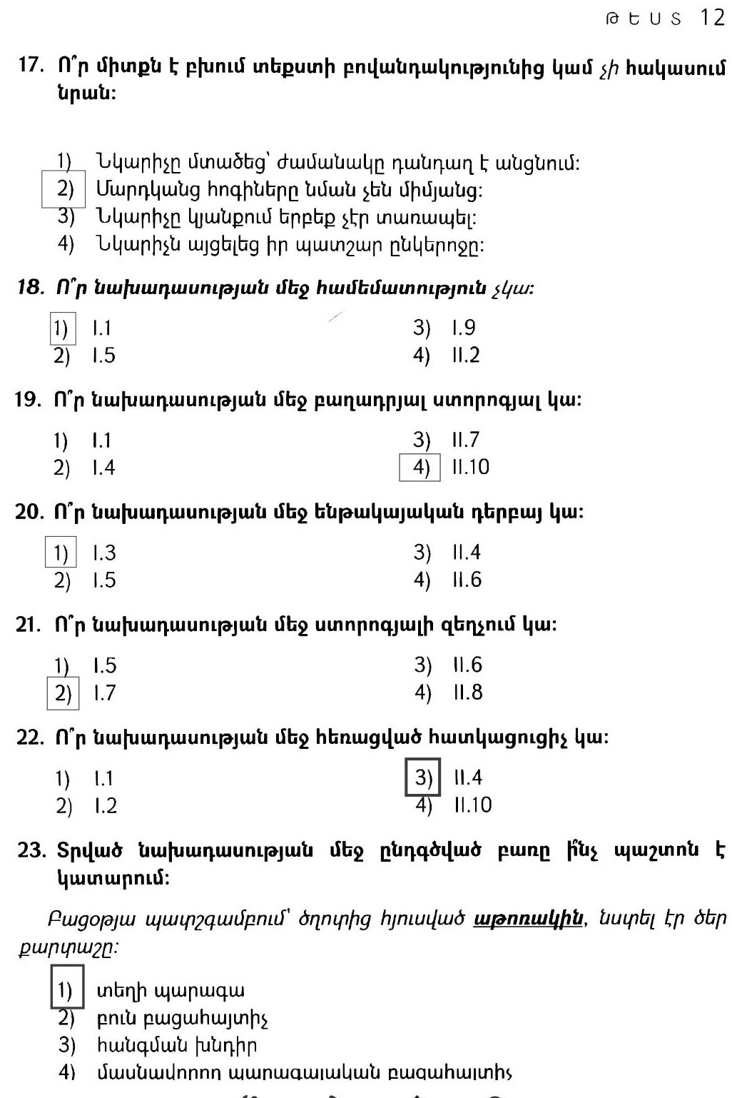 1.Փակագծերում տրվածներից ընտրել այն բառը, որը